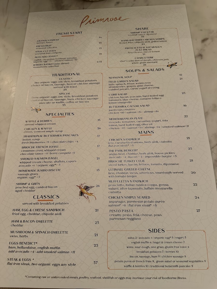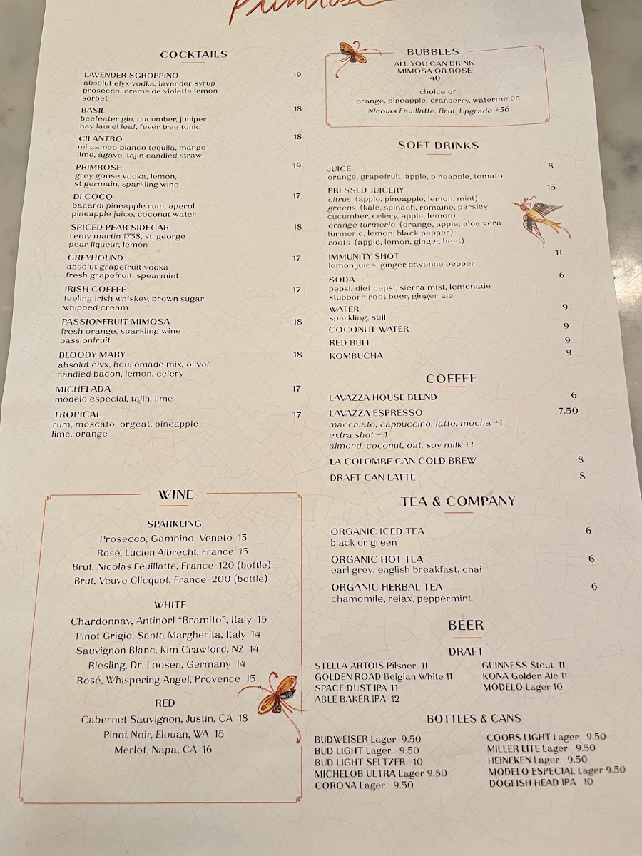 Primrose - NV 89109 Menu
